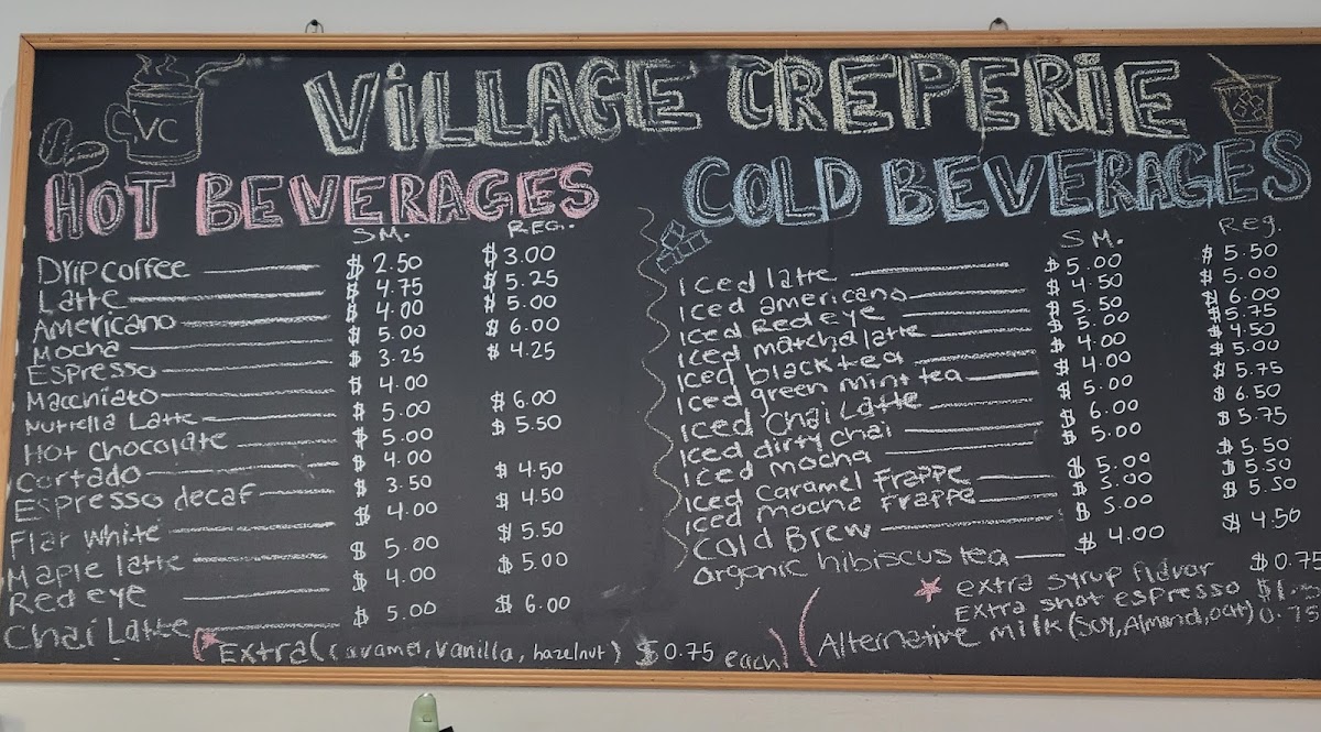 Welcome to Village Creperie, a charming café nestled at 933 Amsterdam Ave, New York, NY. This delightful spot boasts a menu filled with both sweet and savory crepes that are sure to please any palate. From their luscious Chocolate Strawberry crepe to the fresh and vibrant Mixed Berries, each dish is crafted with quality ingredients and artistic flair. Guests rave about the cozy ambiance and the warm, friendly service offered by the dedicated staff.